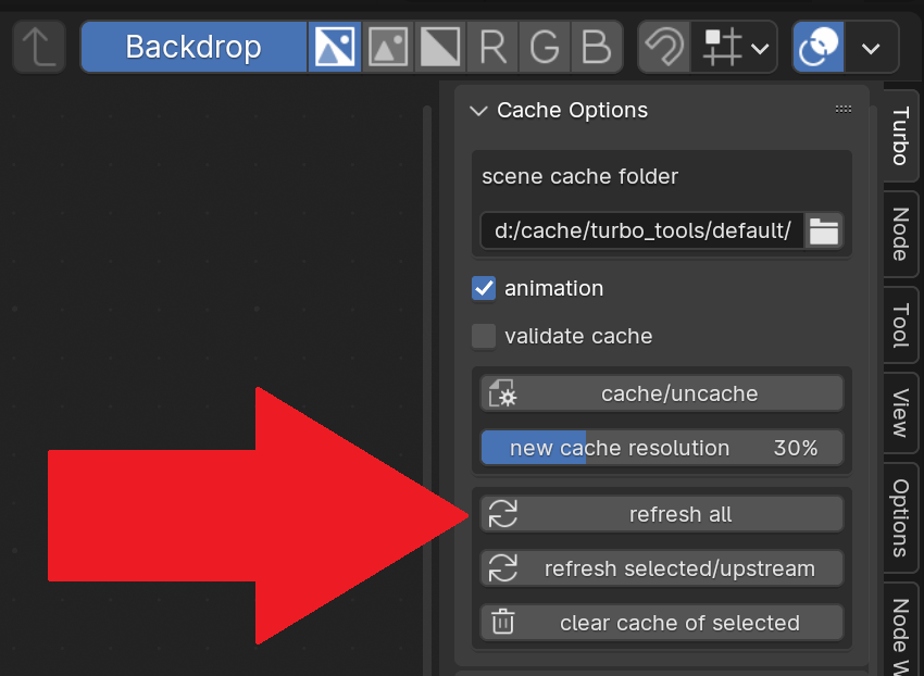 This will refresh only the selected cache node and any cache nodes that rely on it upstream. This saves time unnecessarily refreshing downstream nodes that you know are up to date, particularly if those downstream nodes rely on nodes that take a long time to calculate (denoise nodes etc).