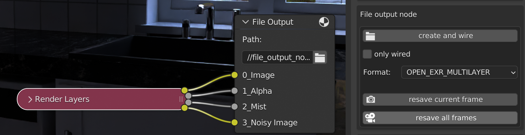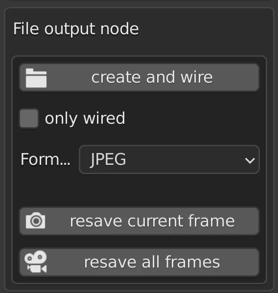 - Resave file output nodes. You can quickly output file output nodes without needing to render. Just select your file output node, and click a button. Supports both still images and animations.