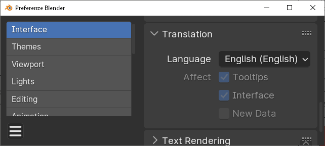 IMPORTANT - If you have Blender set to use a different language, to ensure the addon functions correctly, you need to untick the option to create new data in your selected language. You can change the language setting in the Blender preferences: