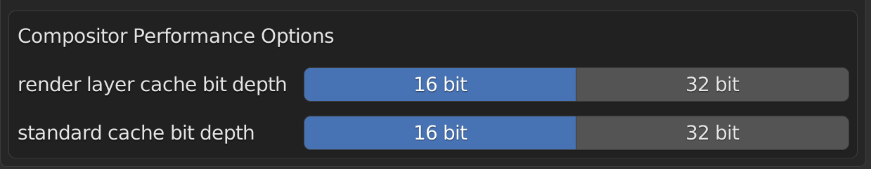- In the addon preferences, consider lowering the render layer cache bit depth to 16bit, as this will reduce the cache file size considerably, leading to faster load times.