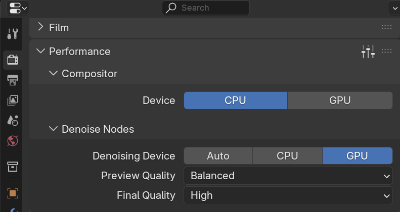 - set the denoising device to GPU in the render panels' performance area.