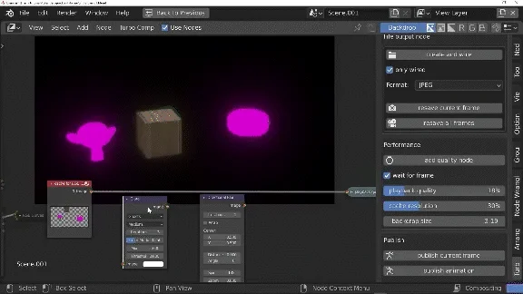 One click publishing temporarily discards any cache and exports your node tree at full quality to a movie file or image sequence. This can be done as many times as necessary as it doesn't require the 3d scene to be re-rendered. Audio can be included in the resulting file by adding the audio strip to the VSE. With the 'remove temporal flicker' option enabled, animation flicker will also be removed during the publishing process, allowing you to render animations up to 40x faster!